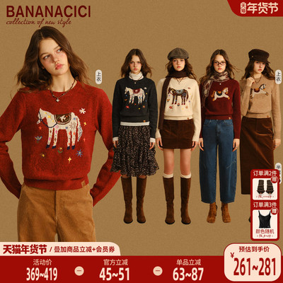 BANANA CICI2025年秋冬新款小马刺绣圆领毛衣针织衫/灯芯绒半裙