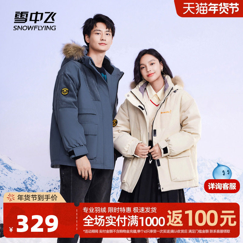 【直播间更划算】雪中飞25秋冬情侣男女款毛领连帽灯芯绒拼接设计
