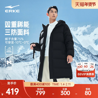 鸿星尔克长款羽绒服男冬季新款男士黑色三防石墨烯棉服青少年外套