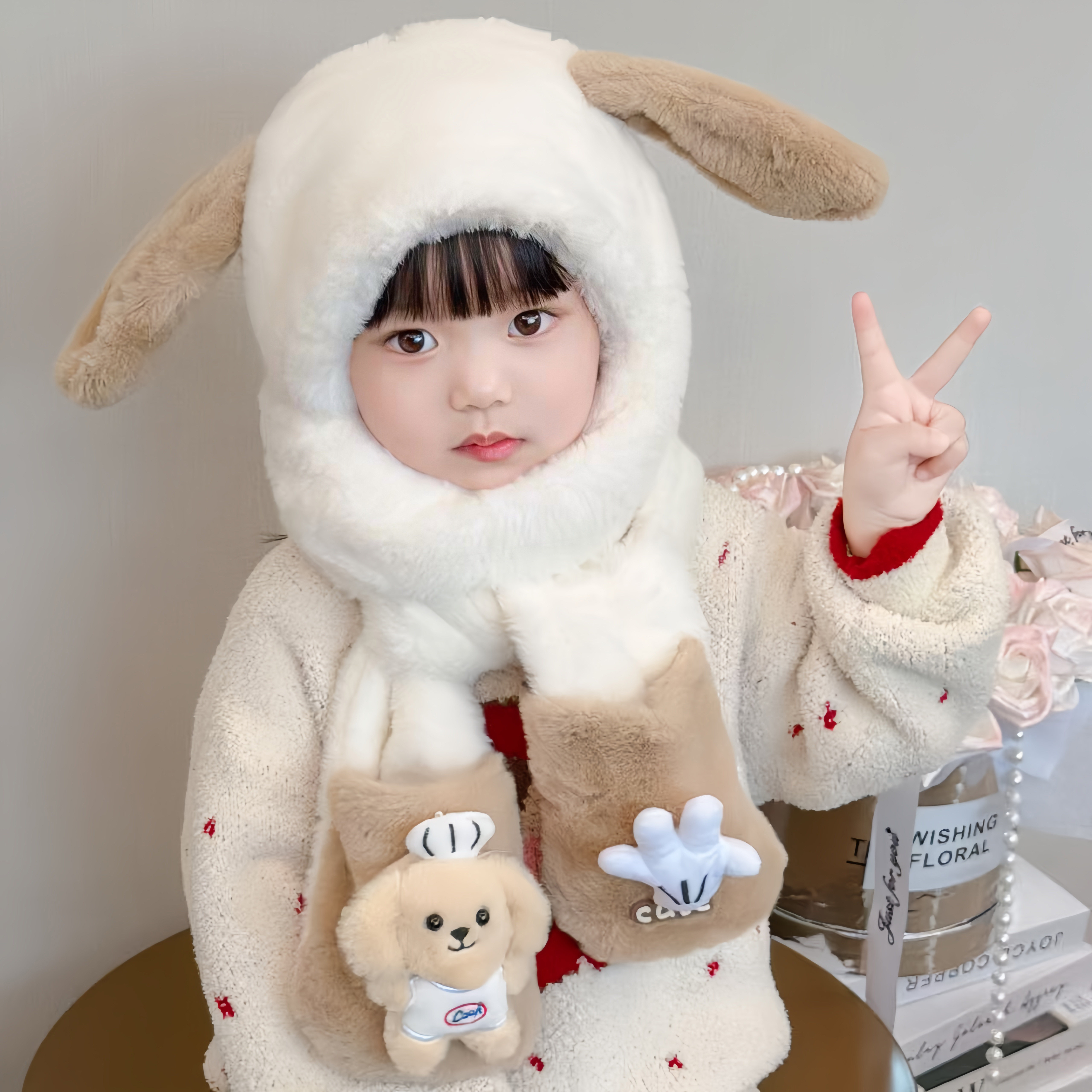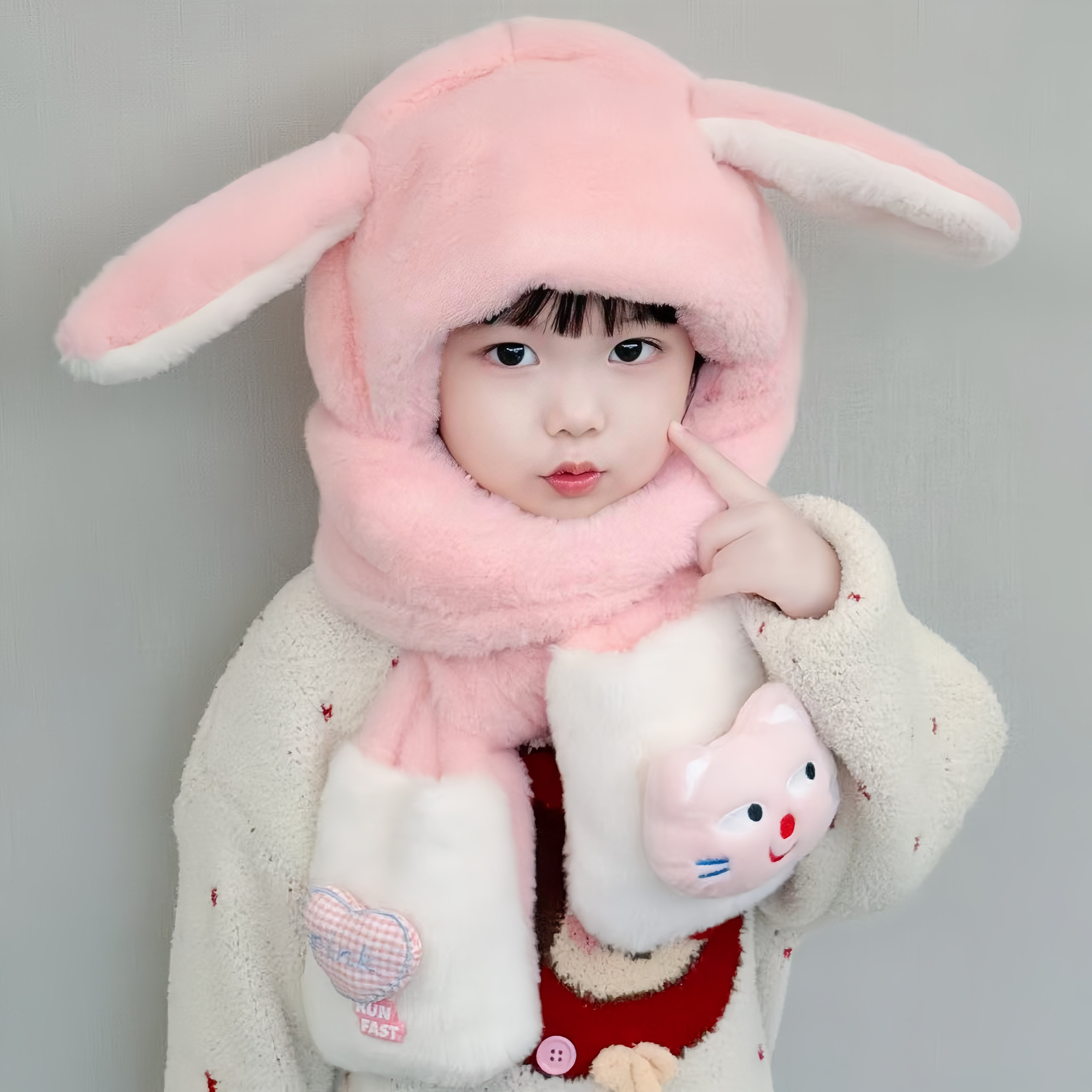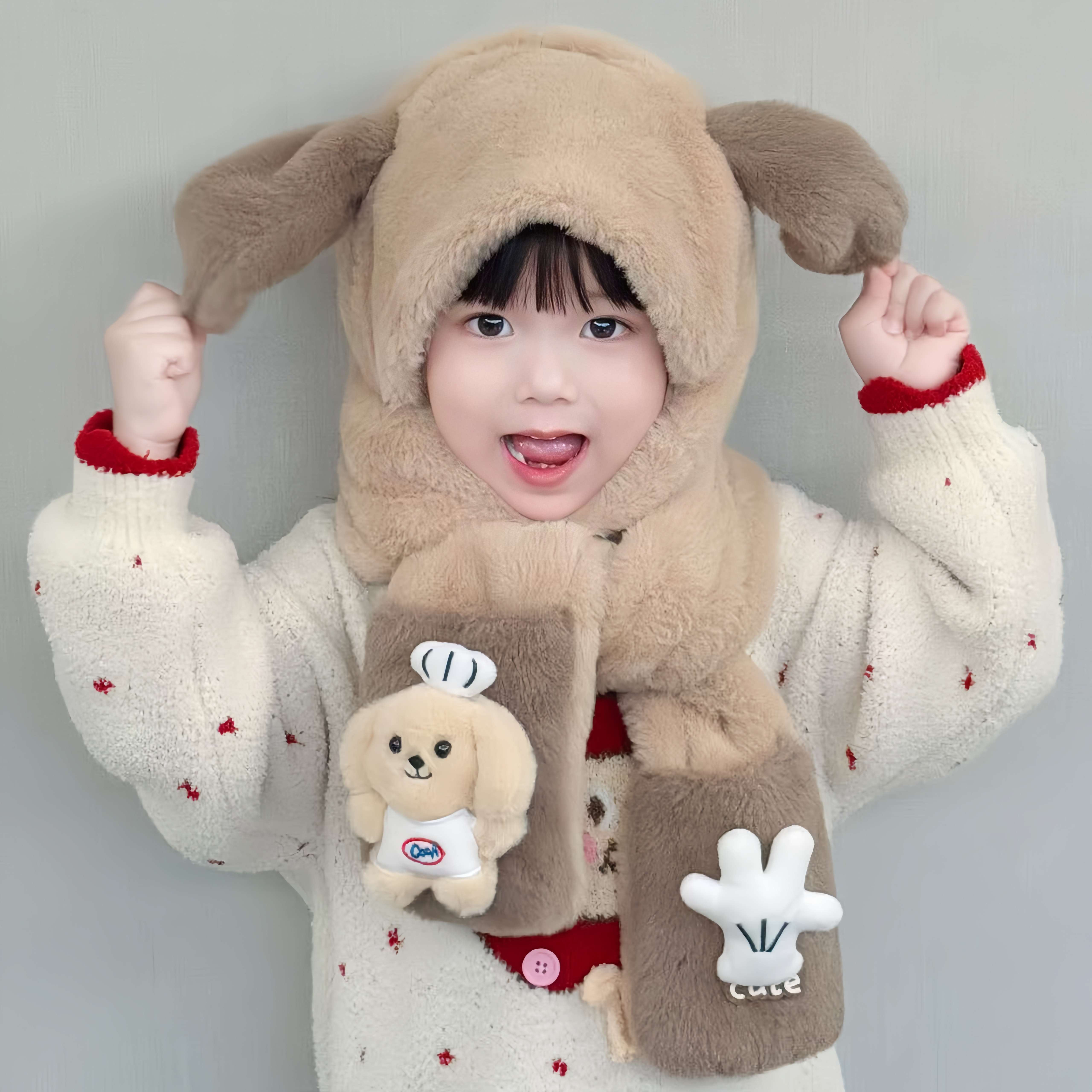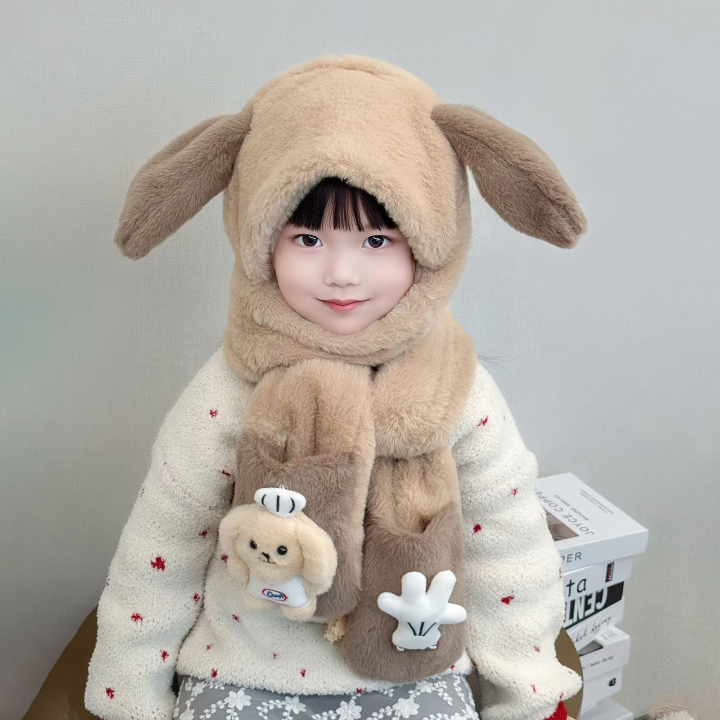 可爱儿童帽子围脖一体保暖三件套