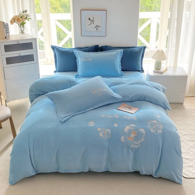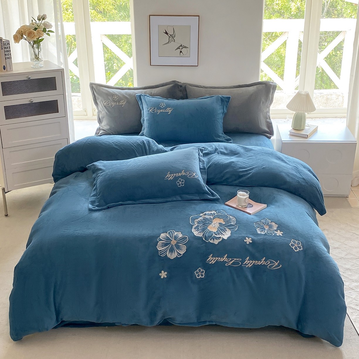 H2025新款绣花200克重牛奶绒四件套刺绣7斤左右高密加厚保暖