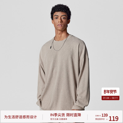 BODYDREAM后片分割长袖t恤男竹节皱打底衫内搭上衣无龄感极简卫衣