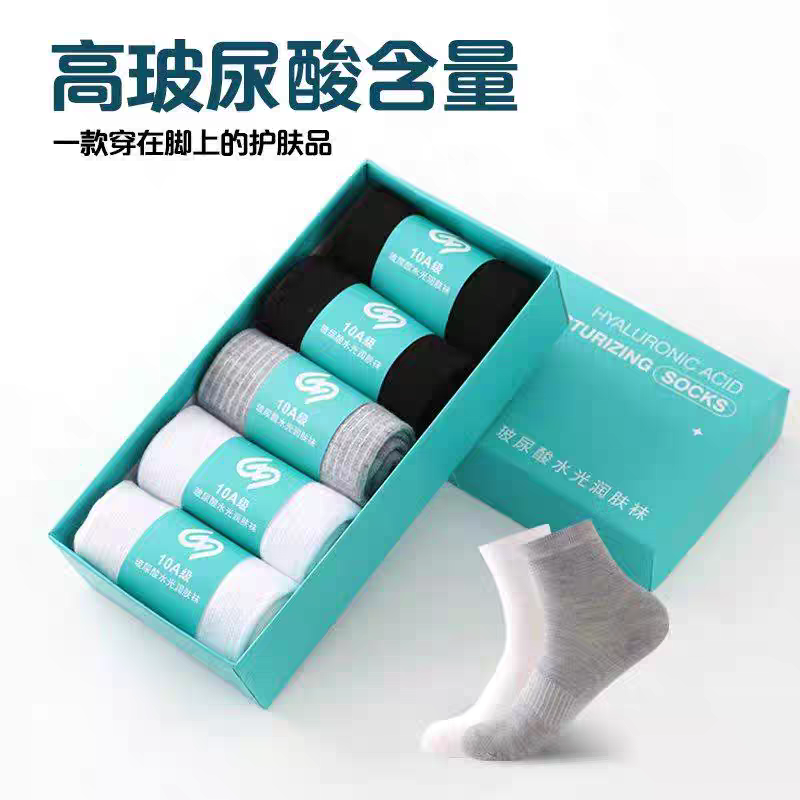 10A抗菌情侣玻尿酸水光润肤棉袜秋冬款男女通用中筒袜