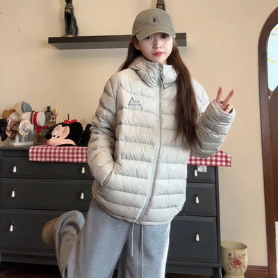 2025年新款白鸭绒排骨轻薄连帽羽绒服女情侣户外休闲短款时尚外套