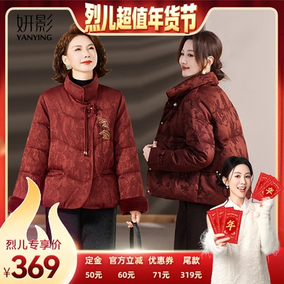 【先加购!烈儿超值年货节】妍影妈妈冬装新中式立领刺绣羽绒服