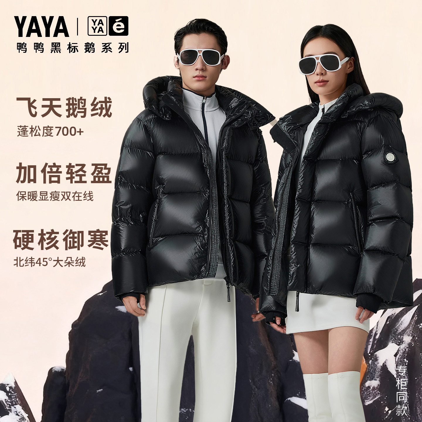 鸭鸭羽绒服女2025冬季新短款男加厚连帽高充绒量鹅绒外套专柜同款