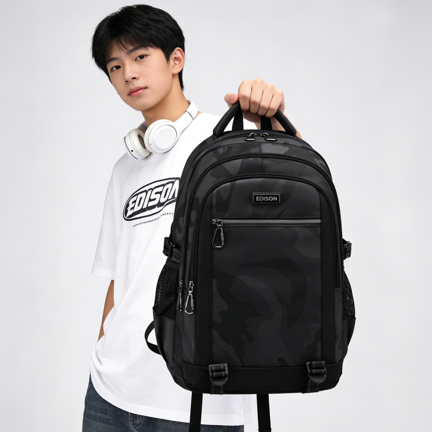 爱迪生高中生护脊书包中学生大容量防泼水双肩包大学生旅行背包男