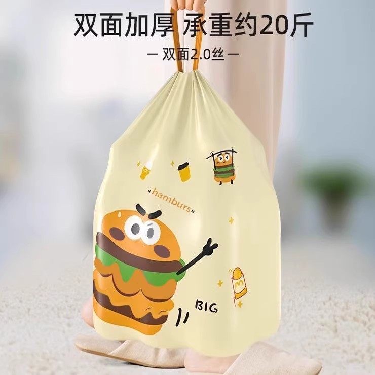 家用加厚卡通抽绳式垃圾袋加厚手提厨房宿舍学生大号黑色塑料袋