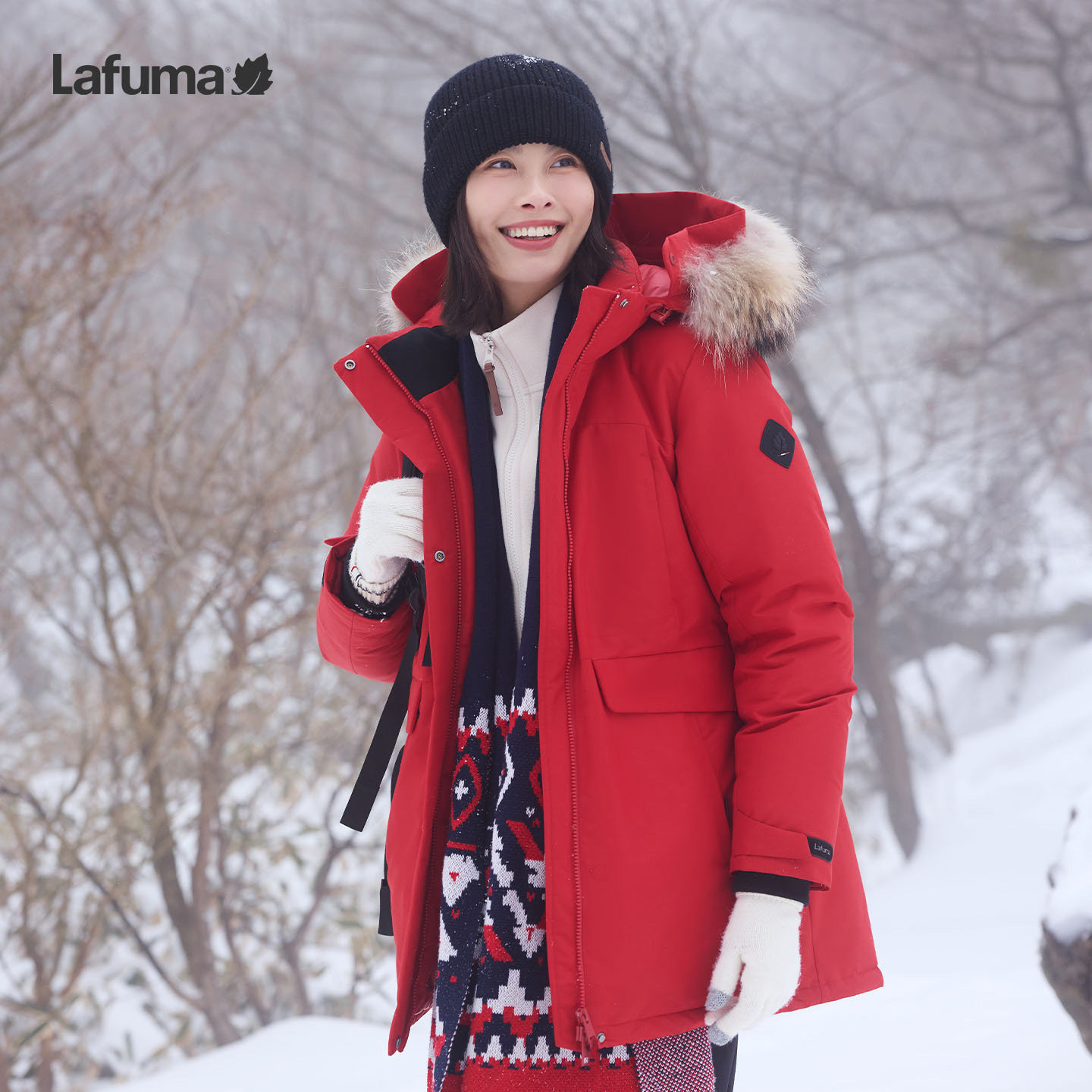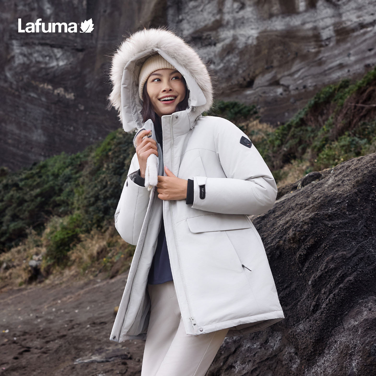 LAFUMA乐飞叶户外防泼水派克大鹅绒工装羽绒服男女款可拆卸帽毛领