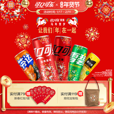 新春烟花装可口可乐有糖汽水雪碧芬达碳酸饮料330ml*20罐美汁源