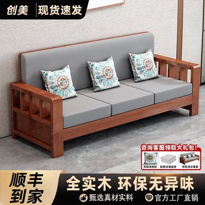 新中式实木沙发小户型客厅2025新款实木沙发农村双人冬夏两用沙发