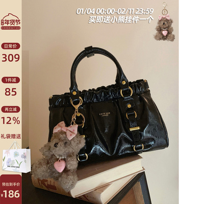 南风Chio2nd 黑皮大小姐托特包复古褶皱手提包包女通勤单肩斜挎包