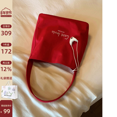 赵露思同款 南风Chio2nd霓虹甜心托特包包女红色帆布包通勤单肩包