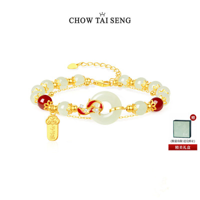 周大生锦鲤上上签和田玉手链女纯银手串玛瑙手饰本命年礼物送女生