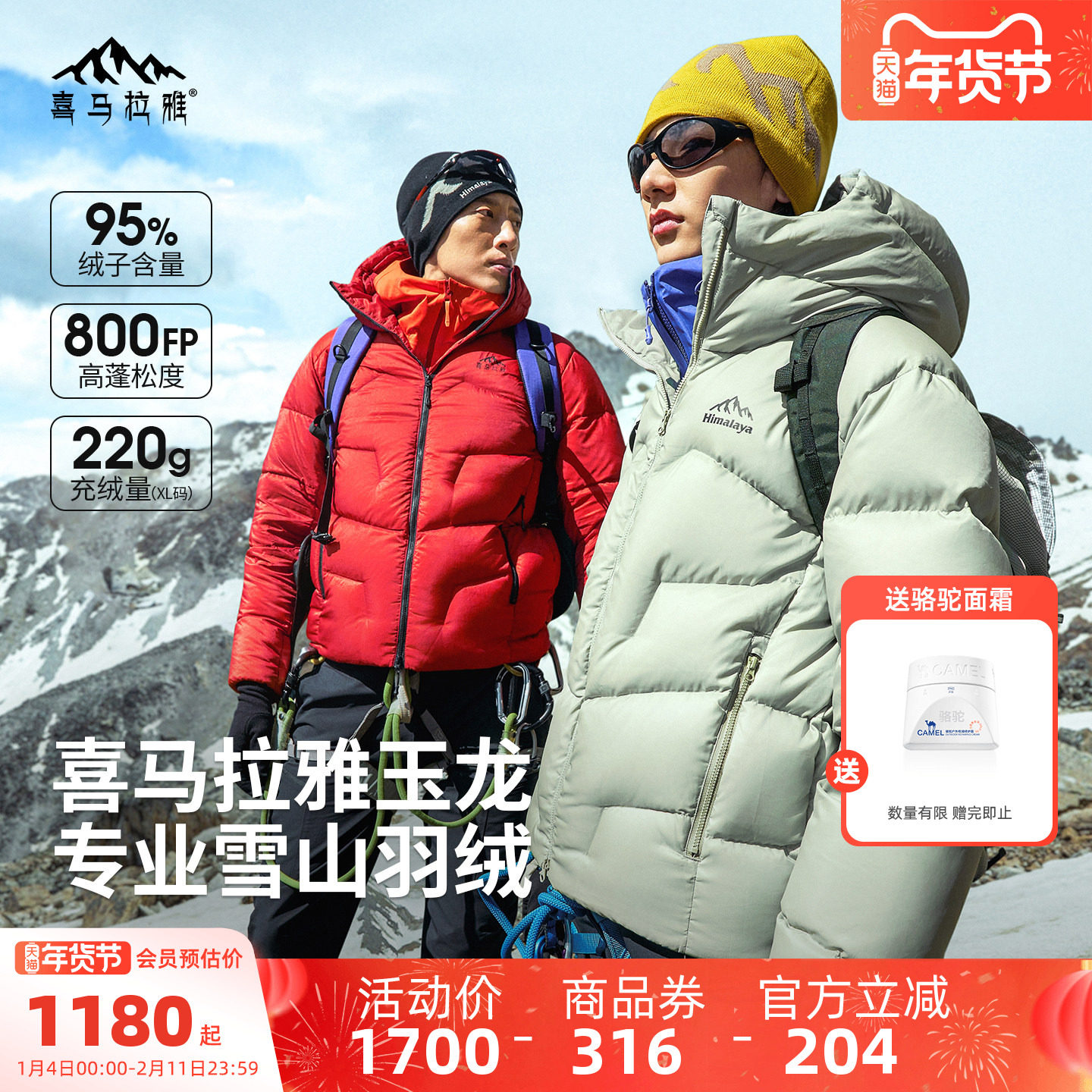 800蓬拒水鹅绒抗寒-20℃雪山羽绒服