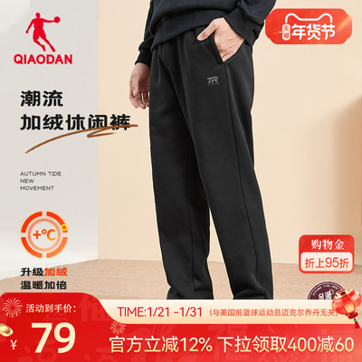 乔丹加绒保暖运动裤冬季新款直筒加厚休闲宽松男士卫裤长裤子官方