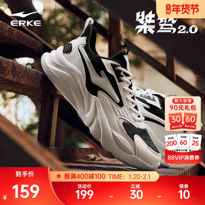 鸿星尔克男鞋运动鞋桀骜皮面秋冬款休闲鞋青少年鞋子老爹鞋跑步鞋