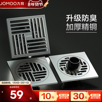 九牧卫浴官方防臭地漏芯卫生间全铜洗衣机地漏下水浴室长条隐形