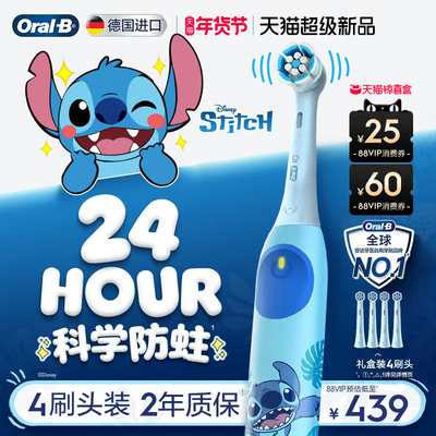 【新品上市】OralB欧乐B史迪仔儿童电动牙刷进口智能礼物软毛8岁+