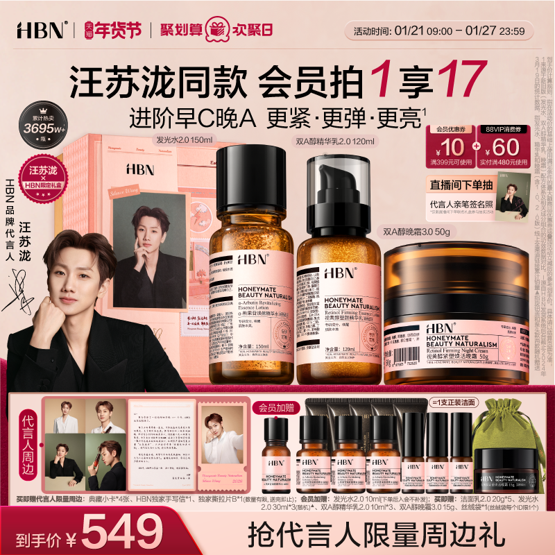 【汪苏泷限定礼盒】HBN早C晚A水乳面霜套装护肤品进阶紧致抗皱