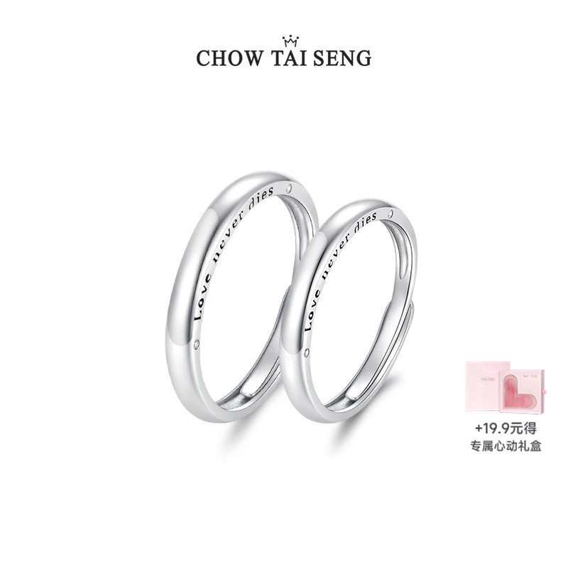 周大生真爱不渝情侣对戒三戒一生纯银一对婚戒指生日礼物送女友