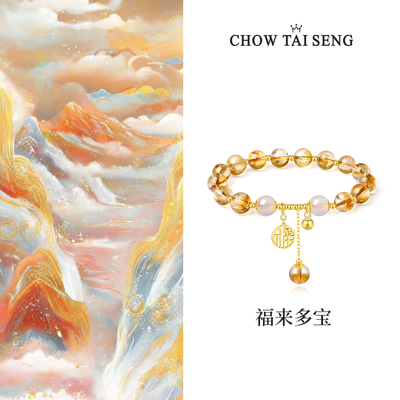 周大生如意普陀系列黄水晶手串S925银玉髓手链猫眼新年礼物送女友