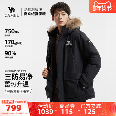 骆驼男装羽绒服冬季黑色短款鸭绒加厚面包服三防户外派克工装新款