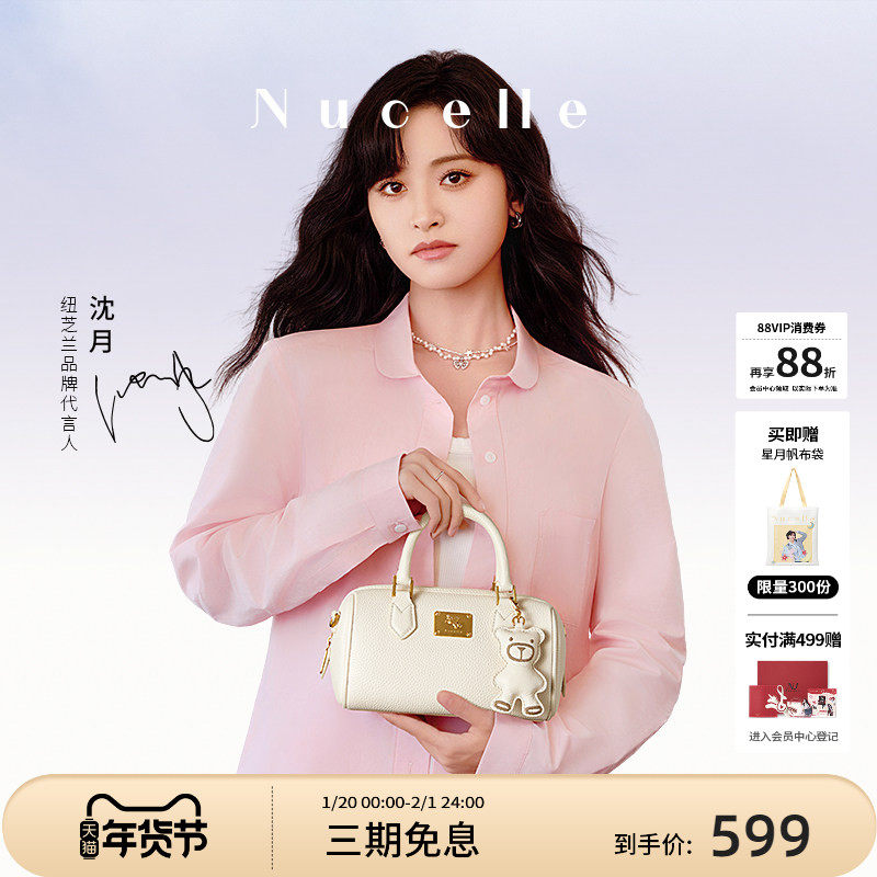 【沈月同款】纽芝兰真皮波士顿牛皮手提包2025新款通勤单肩斜挎包