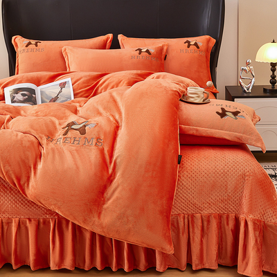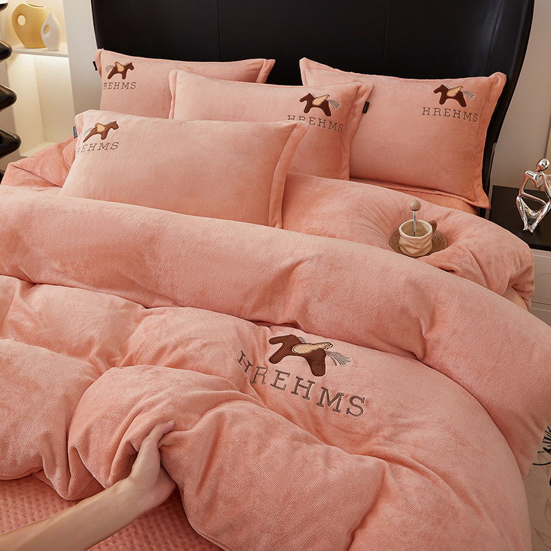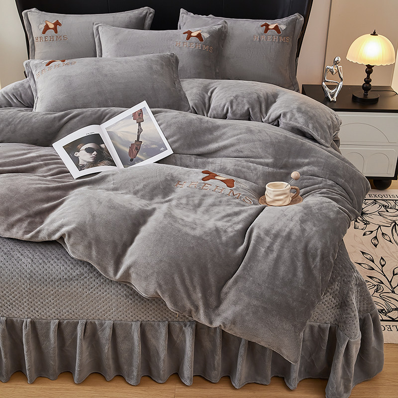 A类冬季加厚牛奶绒床盖刺绣款四件套双面绒床盖可机洗
