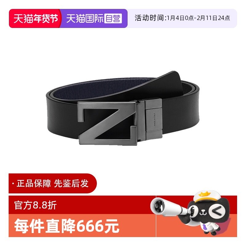 【自营】Zegna/杰尼亚 男士Z字搭扣双面旋转皮带腰带LHBOV