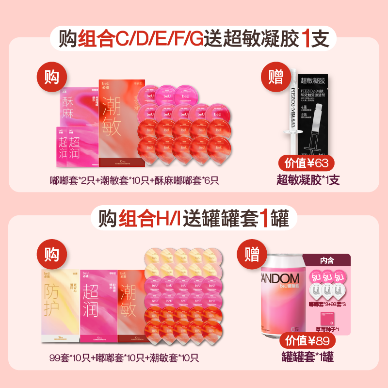 【囤货装】beU必遇潮敏套避孕套超薄玻尿酸润滑快感增强高潮套byt