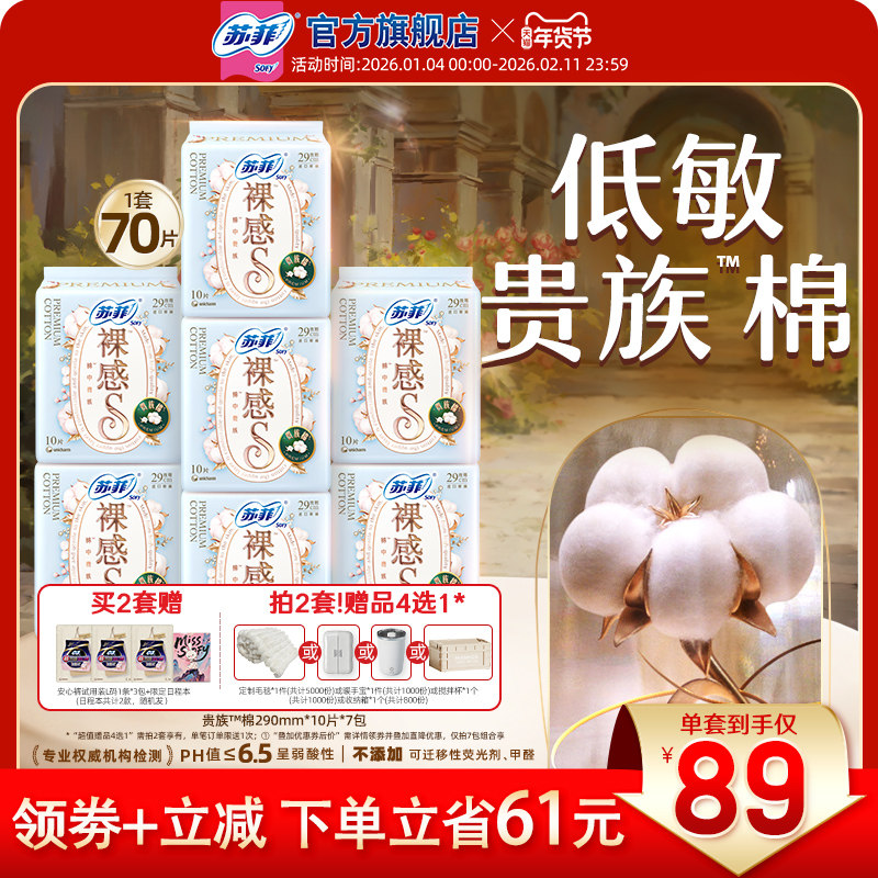 苏菲卫生巾裸感S贵族?棉纯棉敏感肌日夜用正品