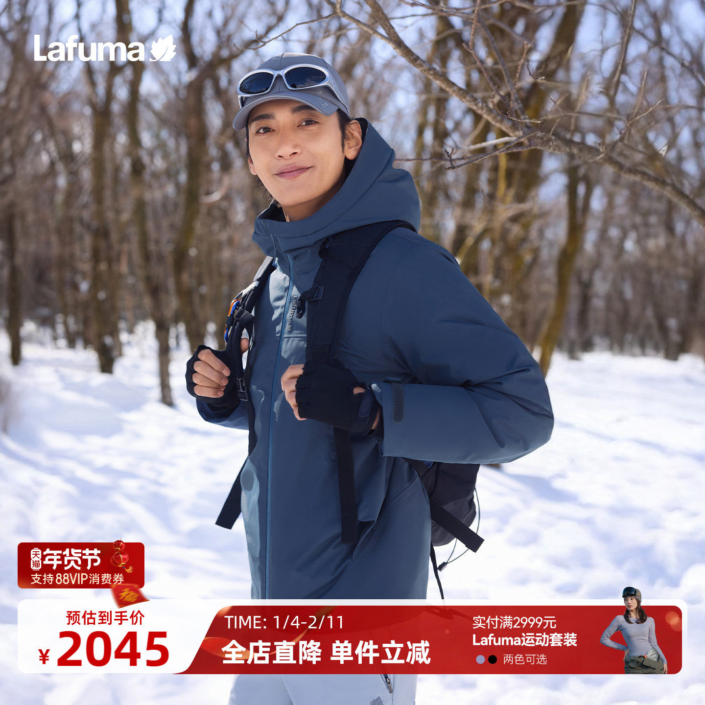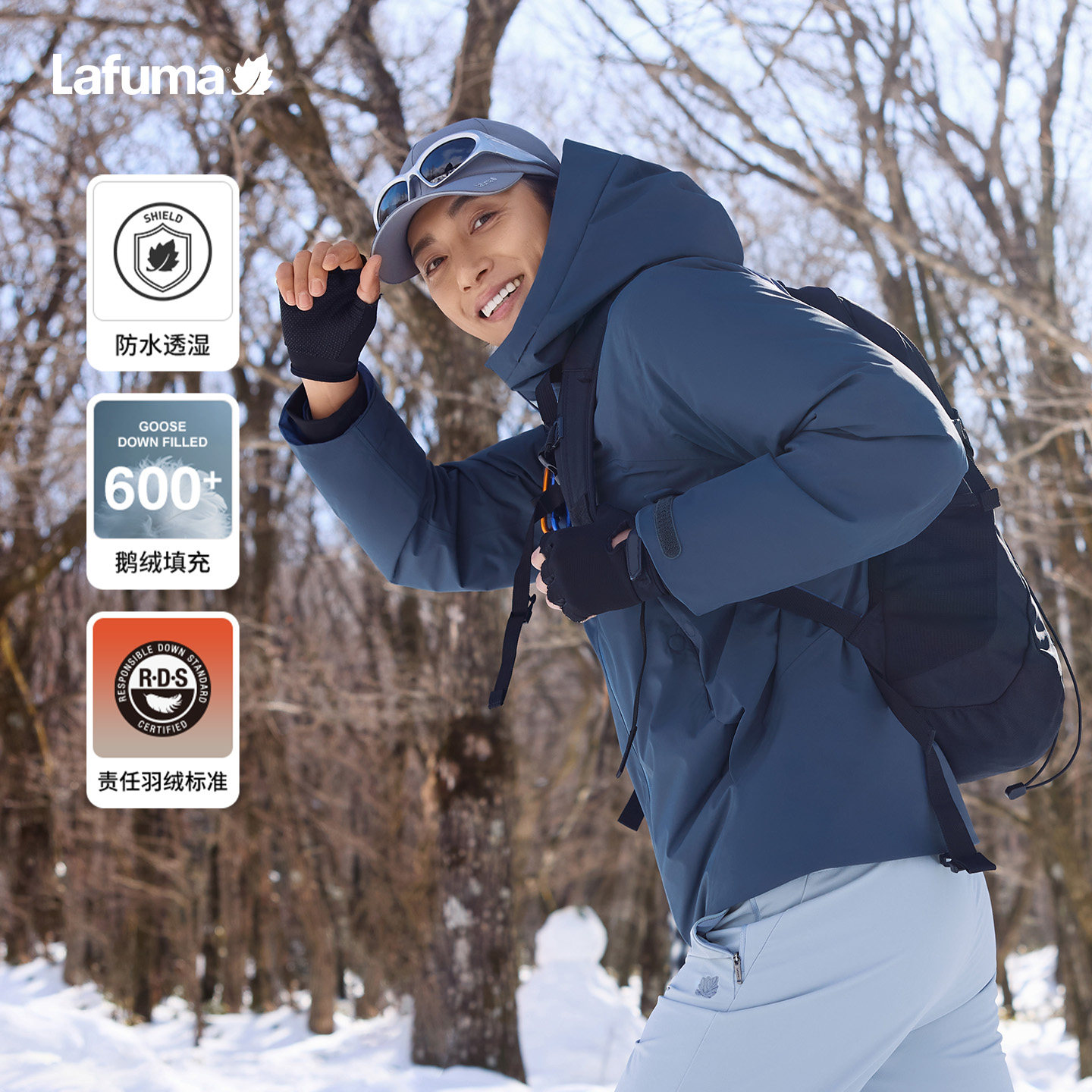 LAFUMA乐飞叶户外秋冬保暖连帽冲锋衣羽绒服男士休闲防风防水外套