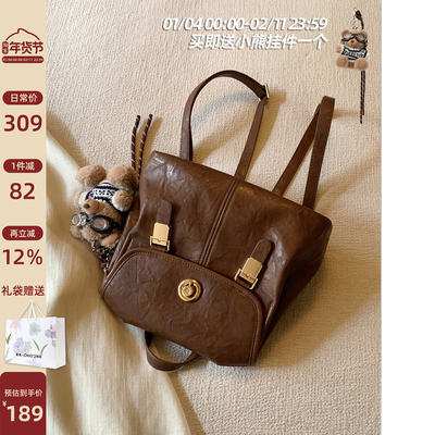 南风Chio2nd 薄暮流金双肩包包女士2026新款复古棕手提包小背包