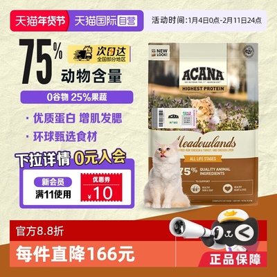 【自营】【40年畅销品牌】爱肯拿鸡肉成幼猫牧场盛宴猫粮4.5KG