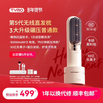 TYMO第5代无线直发梳便携夹板高颅顶护发双充长续航造型礼盒礼物