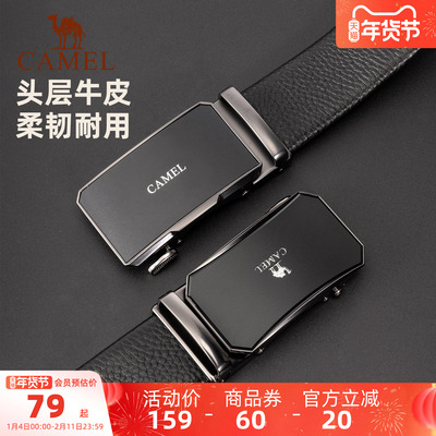 骆驼皮带头层牛皮男士送男友爸爸生日情人节礼物自动扣真皮裤腰带