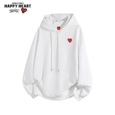 查尔斯桃心 纯色连帽卫衣男秋冬季2025新款加绒加厚情侣抽绳上衣