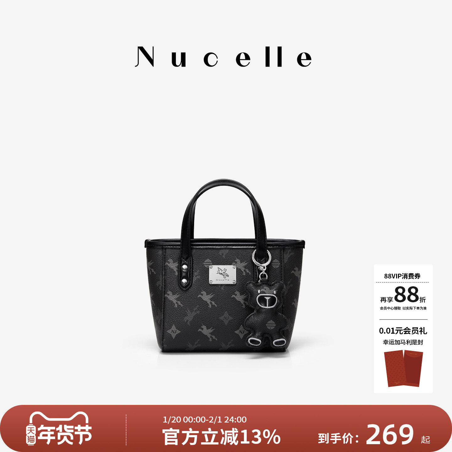 NU纽芝兰黑色包包高级感飞马小托特包通勤单肩斜挎包菜篮子手提包