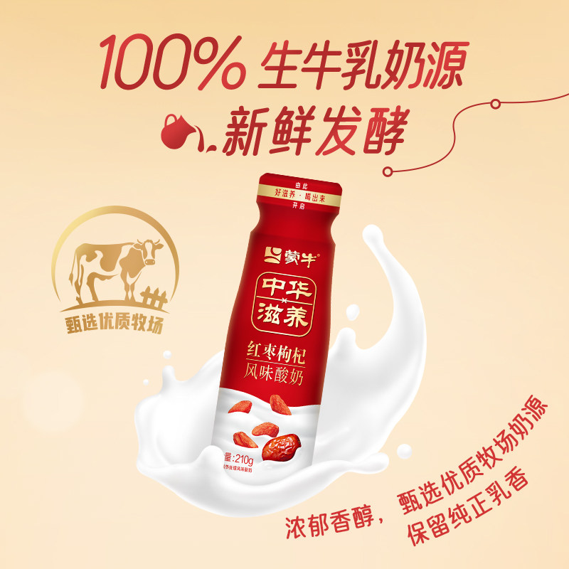蒙牛0乳糖简酸奶/中华滋养红枣枸杞/阿慕乐燕麦黄桃 7瓶