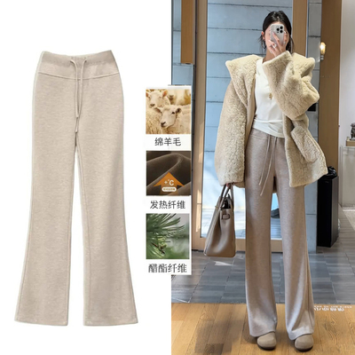 2025秋冬新款羊毛加绒加厚微喇裤女高腰垂感直筒显瘦显腿长喇叭裤