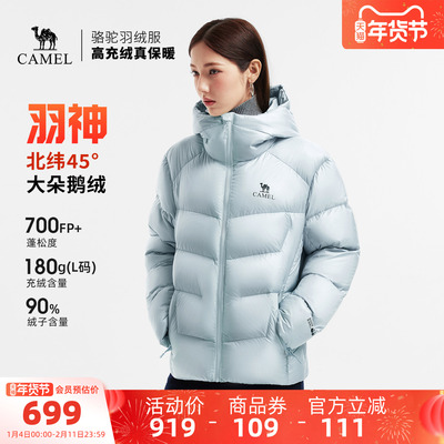 骆驼羽神女装鹅绒羽绒服短款2025冬新款保暖加厚连帽羽绒鹅绒外套