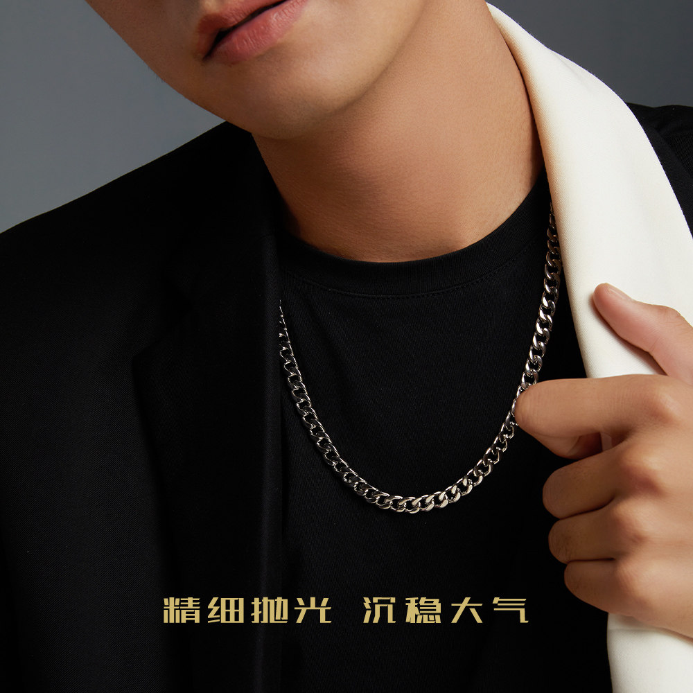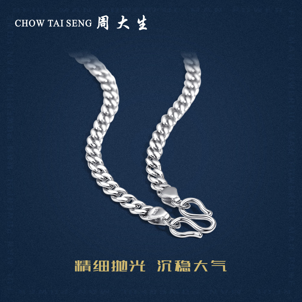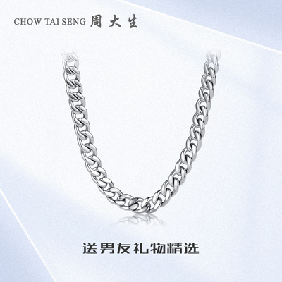 周大生S925小众纯银项链男士潮素链简约秋冬毛衣链生日礼物送男友