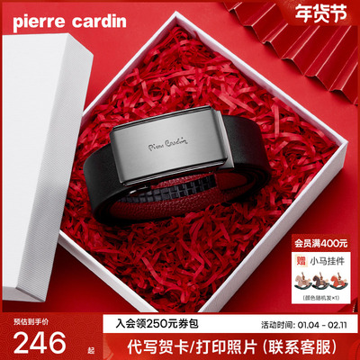 【本命年】皮尔卡丹皮带真皮新款红色腰带男士送礼正品牛皮裤腰带