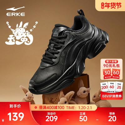 鸿星尔克玉兔女鞋运动鞋冬季新款休闲鞋黑色鞋子厚底增高老爹鞋女