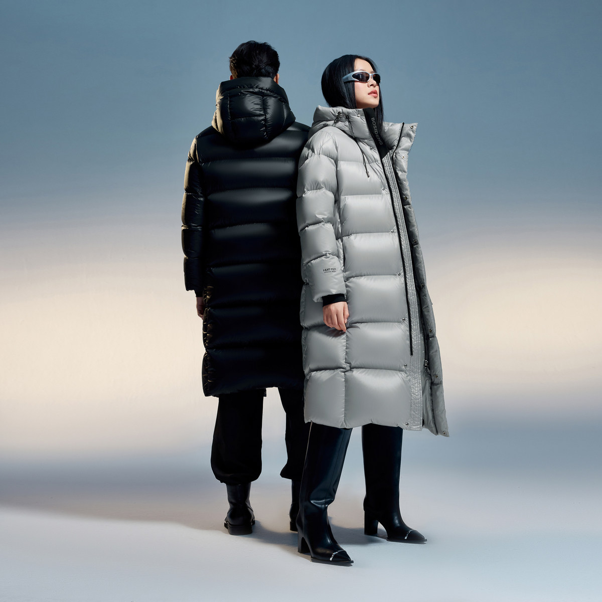 波司登冬男女同款泡芙智暖蓄热长款优雅时尚连帽高蓬厚鸭绒羽绒服