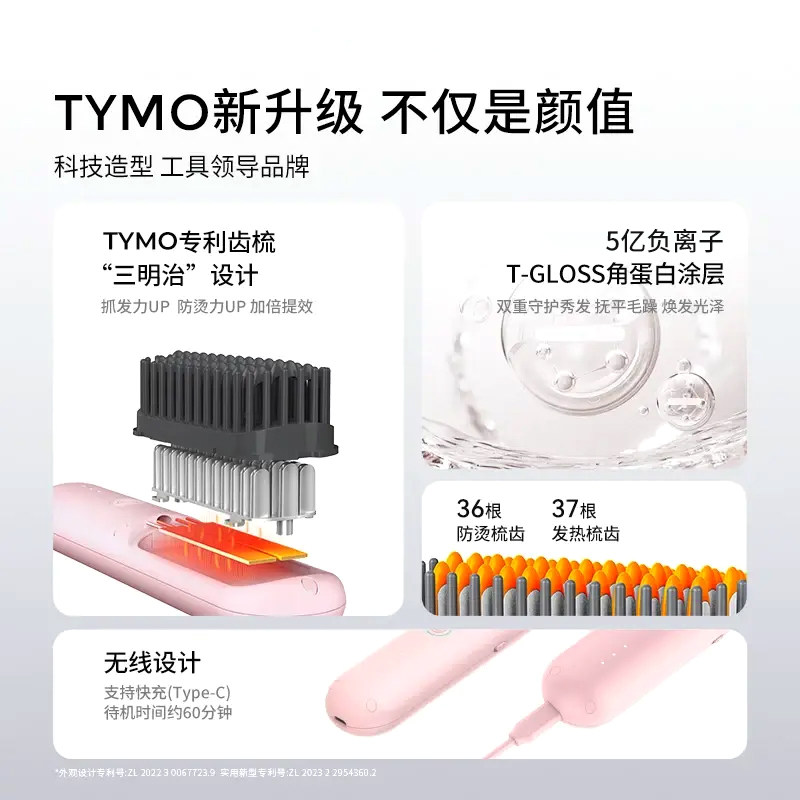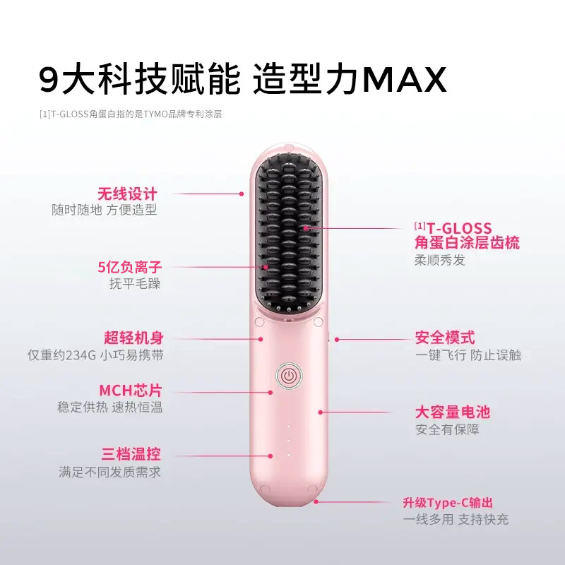 TYMO第4代Lite无线直发梳夹板高颅顶便携负离子造型梳不伤发礼物