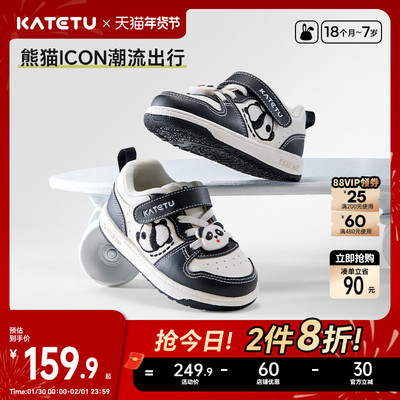 卡特兔女宝童鞋儿童板鞋男童2026春季男宝新品女童鞋子宝宝熊猫鞋