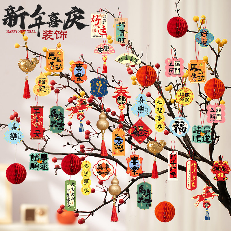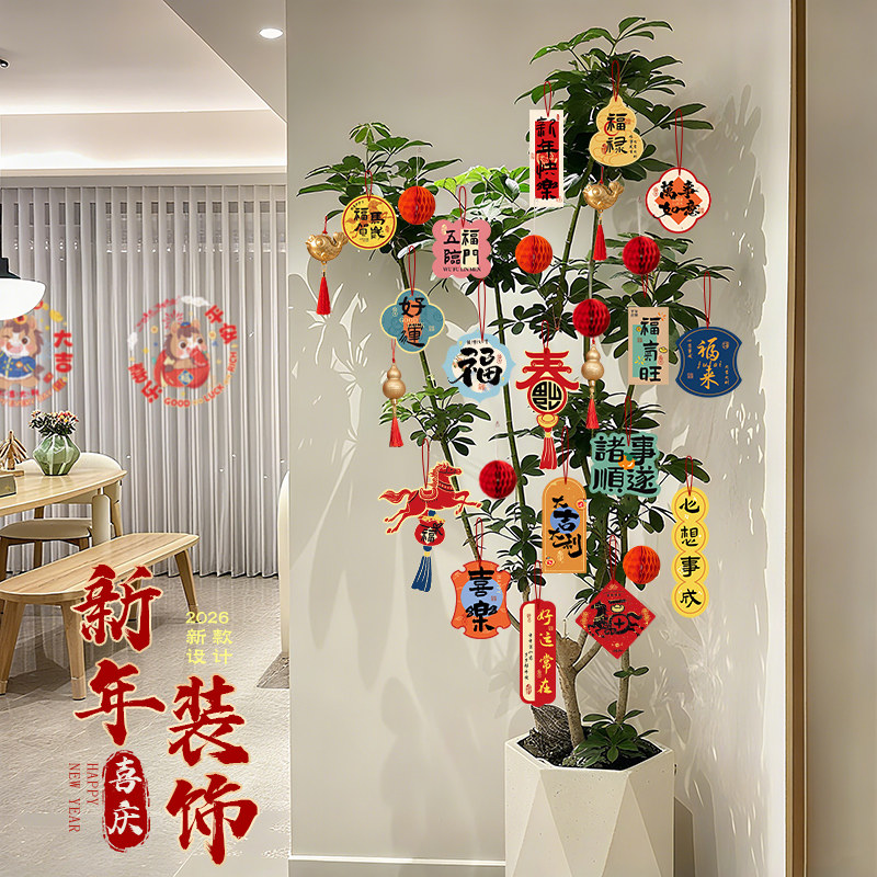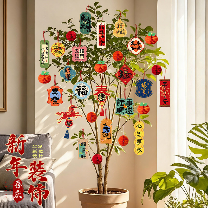 2026新年装饰过年绿植挂件马年春节客厅贺年挂饰灯笼年味氛围布置