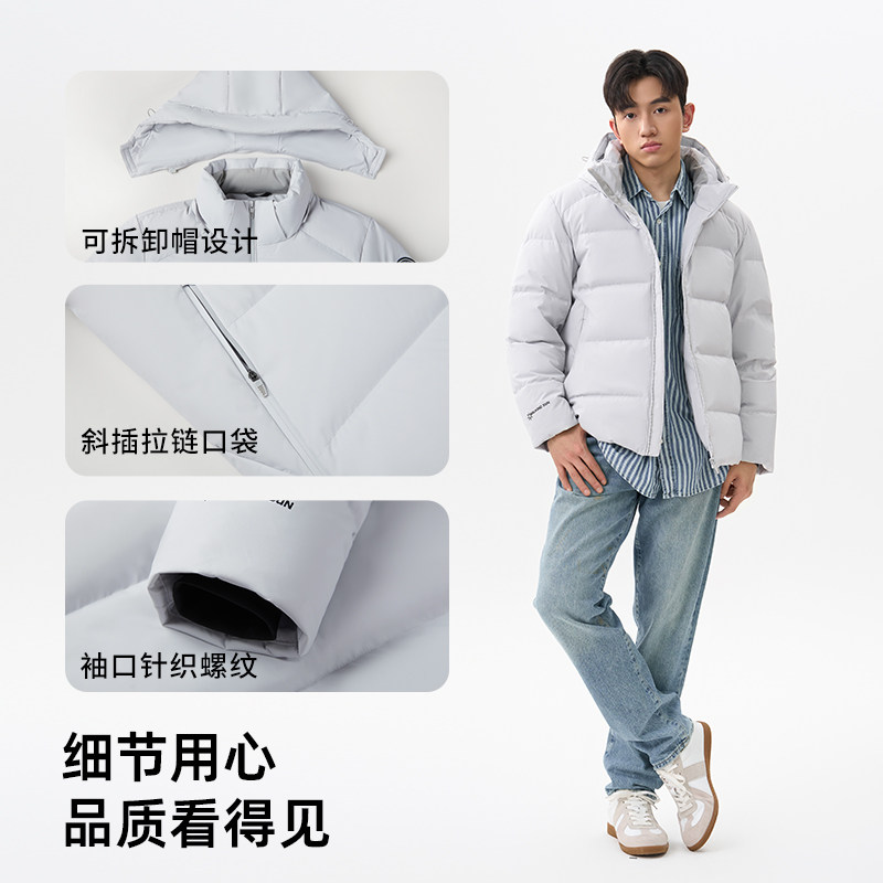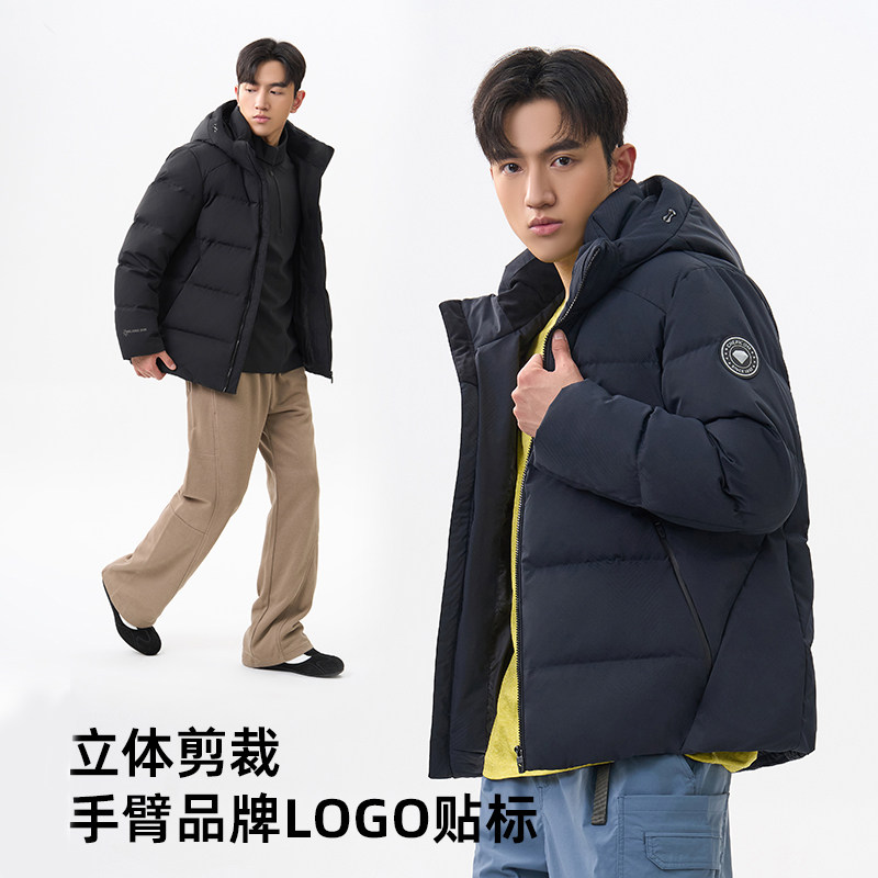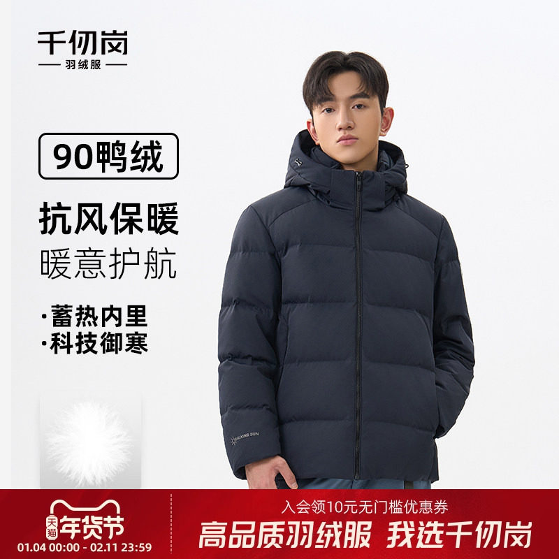 千仞岗2025秋冬季新款短款羽绒服外套商务抗寒保暖连帽上衣百搭